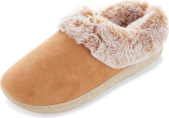Stay cozy whether you're hanging out at home or on a casual playdate in ultra-cozy slippers featuring faux fur trim, soft velour lining, and a skid-resistant rubber sole.