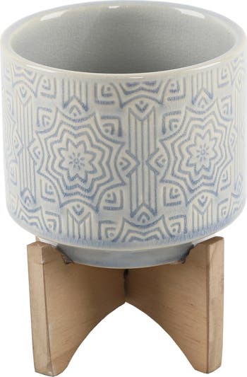 4.25" Star Ceramic Pot on Wood Stand,Glass Blue. Lovely Decor indoor planters.