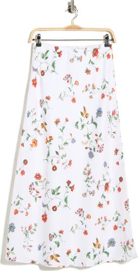 A delightful floral print brings vibrant color to this linen midi skirt cut in a classic A-line silhouette.