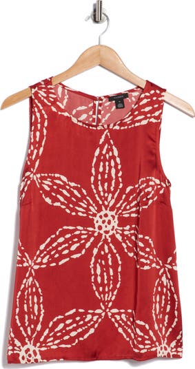 A floral print brings vacation-ready appeal to this shell tank cut from easy, breezy fabric.