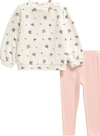 Dainty blooms dot a plush velour top that's paired with coordinating leggings for a comfy and sweet look