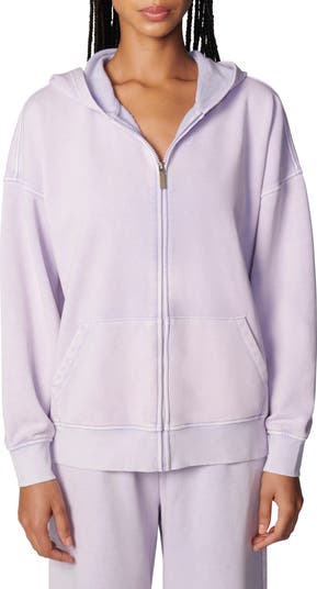 Dropped shoulders frame this washed cotton-blend hoodie designed with a sporty zip slicing down the front.