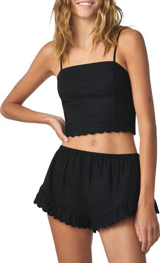 A smocked back perfects a camisole cut in an abbreviated length that's perfect for warmer temps.