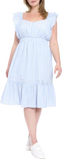 Fluttering sleeves and a frilled hem add graceful movement to this softly striped dress.