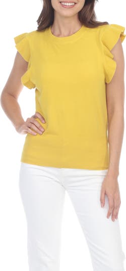 Fluttery sleeves frame a crewneck top knit from soft and stretchy yarn for all-day comfort.