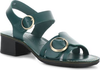 Silvertone buckle hardware accentuates the modern, minimalist style of a block-heel sandal that also offers everyday comfort.