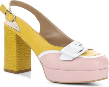 Complimentary hues amplify the retro appeal of a slingback sandal complete with a cushy footbed and standout platform sole.