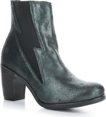 Lightning bolt designs down the sides electrify the look of a block-heel Chelsea boot set on an arch-supporting insole.