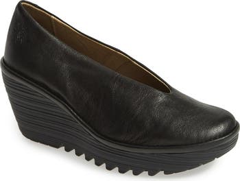 A lugged platform sole adds versatile style to a leather slip-on pump. The perfect way to add stature and stay comfortable.