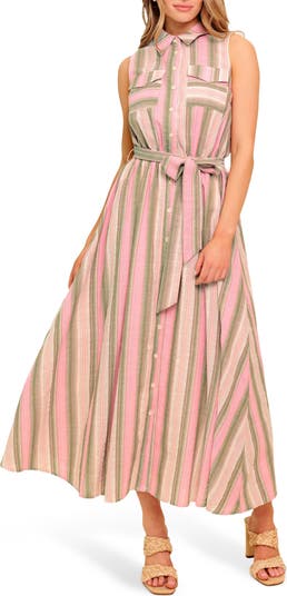 A spread collar and removable waist belt detail a sleeveless print dress with a sporty touch that’s perfect for stylish, on-the-go days.