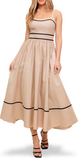 Contrast Stripe Cotton Fit & Flare Maxi Sundress