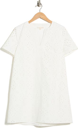 Pretty eyelets update the look of this cotton shift in a leggy length.