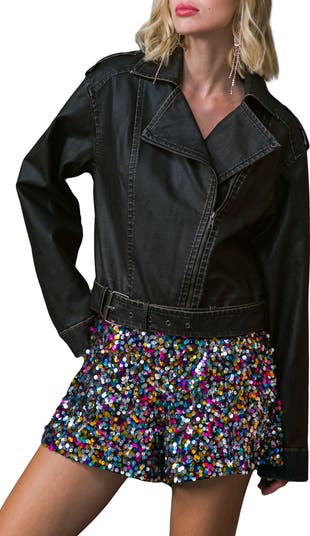 Buckled hardware amplifies the edgy vibe of a moto jacket made from soft faux leather.