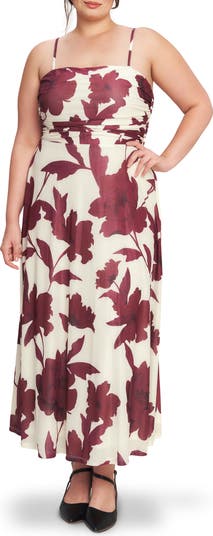 Effortlessly elegant, this midi dress features a figure-skimming fit-and-flare silhouette, subtle ruching and a floral print.