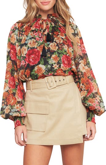 Floral Tie Neck Long Sleeve Top