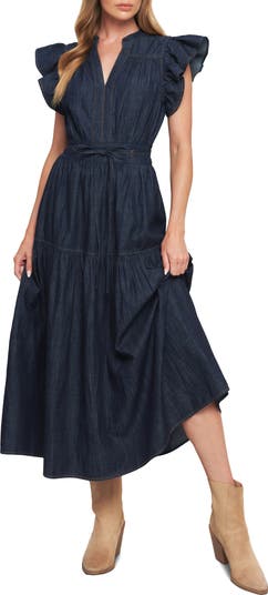 Flutter Sleeve Denim Maxi Dress