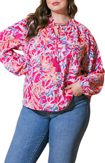 Brighten your day with this flowy, lightweight top framed by a tassel-tie keyhole neck and gently puffed sleeves.
