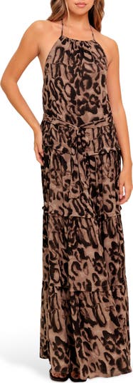 A waist tie and scoop neck bring an elegant finish to this leopard-print maxi dress that transitions effortlessly from day to night.