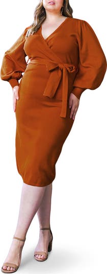 Elevate your date-night look with this lightweight sweater-dress boasting a faux-wrap bodice and billowy balloon sleeves.
