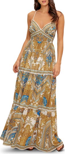 Perfect for your next event, this patterned midi dress flaunts a flowy silhouette and V-neckline.