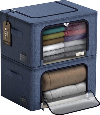 Pack, zip, and transport household essentials with a clear view! The Sorbus Storage Bin set is the perfect way to store your clothing and household items. It features a front and top zipper opening, with two carry handles, and a large transparent front window. The generous size provides plenty of room for seasonal apparel, bedding, linens, holiday decorations, toys, accessories, and more. A fully zippered closure protects items from dust, pest, and water damage while the large clear window allows you to see contents at a glance. As a bonus, each bin includes a label holder to quickly classify what's inside. This set of two can be used individually or stacked together in your designated storage area. When not in use, simply collapse flat and tuck away under the bed, chest drawer, or closet shelf. Store out-of-season clothing or infrequently used items with ease around the home, office, or dorm. Don't let limited closet space cramp your style! Make the most of your wardrobe with folded garments neatly displayed in sturdy storage bins. Whether used for sweaters, guestroom comforters, towels, or your favorite designer bags, these organizers de-clutter any closet, bedroom, laundry room, attic, and more. The convenient top opening makes it easy to load contents when placed on the floor, while the front opening provides access to contents while the bins are stacked. For easy transport, use the portable carry handles and label holder to identify contents as you pack around the home, office, dorm, or travel to the car. The stackable design maintains shape with a sturdy metal frame and folds flat for storage. To assemble, the metal frame pops open into a large storage cube bin. When not in use, simply collapse flat. - Color: blue - Set of 2 - 24" x 16.5" x 14" - Imported Orders cannot be shipped to Canada, Alaska, Hawaii, Puerto Rico or P.O. Boxes.