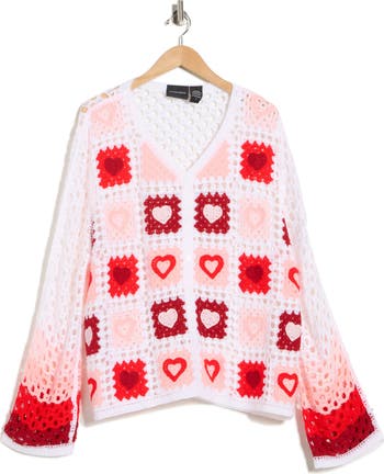 A cardigan-sweater crocheted with vibrant granny squares delivers an eclectic vibe to your everyday look.