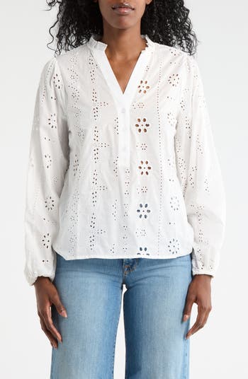 Embroidered eyelets turn up the sweetness factor of a signature button-up shirt cut from pure cotton for a crisp fit with every wear.