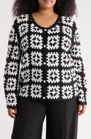 Crocheted granny squares have you channeling the bohemian aesthetic in this stylish V-neck top framed by long sleeves.