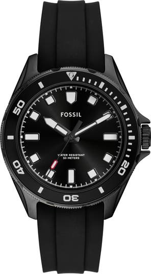 This sleek stainless steel case boasting a black sunray dial with easy-to-read luminous markers is set on a sporty silicone strap for the perfect blend of elegance and everyday durability.