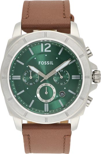 Equipped with a reliable quartz movement, this industrial-inspired chronograph set on a leather strap makes a handsome addition to your collection.