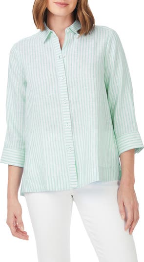Clean lines and a relaxed fit lend a timeless aesthetic to a button-up shirt woven from ultrabreathable linen patterned with classic stripes.