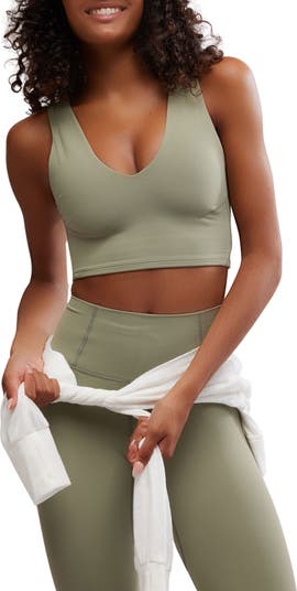 Feel better than ever in this cropped V-neck tank designed with wide, supportive straps and a deeply dipped back for next-level range of motion.