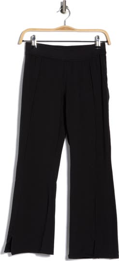 Show off sporty-chic style in these cropped flare-leg pants framed by a ribbed waistband and split hems.