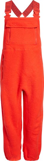 Hit the slopes in these fluffy fleece overalls designed with functional straps and secure pockets.