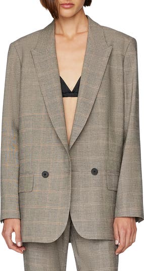 A boxy fit brings vintage-meets-modern style to a peak-lapel blazer in a polished windowpane print that makes a polished addition to any look.