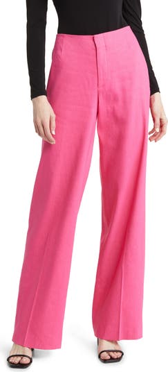 Jazz up your wardrobe with these wide-leg trousers crafted from a breezy linen blend in a statement-making hue.