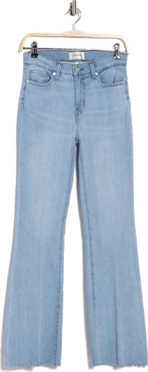Step out in style in this flare-leg pair cut from stretch-kissed denim with a high-rise waist and fashioned in a laid-back light wash.
