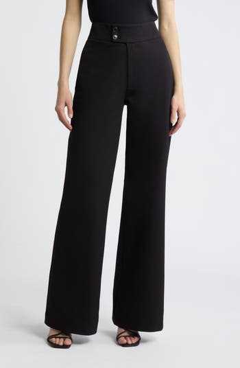 Power up your workday look in these smooth stretch-cotton pants flaunting a wide waistband and statuesque wide legs.