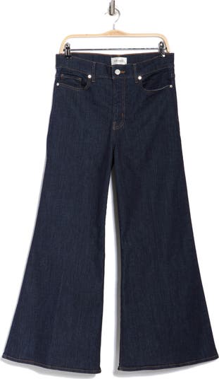 These dramatic, '70s-inspired palazzo jeans are remade for today with dark-wash stretch denim and a slightly shorter inseam.