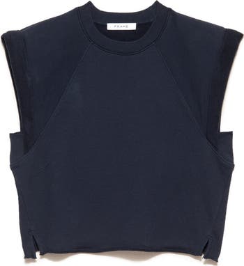 Tacked short sleeves create strong shoulders on an organic-cotton terry pullover that's fiercely retro yet right on trend.