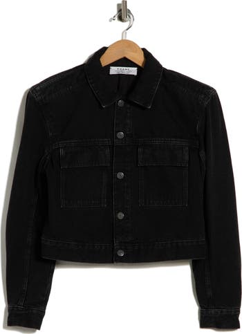 Workwear-inspired patch pockets front this nonstretch-denim jacket cut in a cool boxy jacket cast in a modern dark wash.