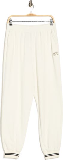 Striped ribbed cuffs put a sporty spin on these comfortable cotton-blend sweatpants finished with handy pockets.