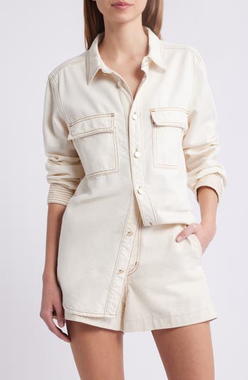 An oversized fit furthers the casual vibe of this button-up shirt made of structural nonstretch denim.