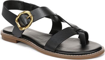 This faux-leather sandal with simple, smooth straps balances effortless elegance with all-day wearability.