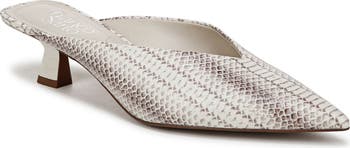 A sleek kitten heel complements the sharp silhouette of a bold mule, refreshed with an extra-pointy toe for a contemporary edge.