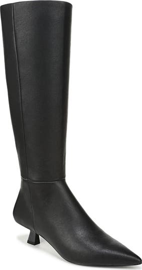 A pointy toe and kitten heel balance a sleek knee-high boot fashioned with a side zipper for easy entry.