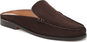A moc toe adds a classic touch to an outfit-elevating mule lifted by a low stacked heel.