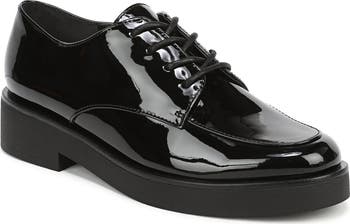 A glossy faux-leather upper adds work-to-weekend versatility to a streamlined derby set on a block heel.