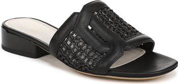 A subtle slot separates the linked seams of this charming slide sandal, updated with a squared block heel for a modern twist on a classic design.
