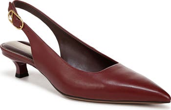 A slingback strap and kitten heel add a graceful flourish to this closet-staple pointy-toe pump.